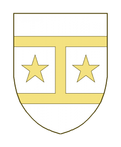 Deux filets en fasce, l’une en chef, l’autre en pointe, reliés par un filet en pal, accosté de deux étoiles.