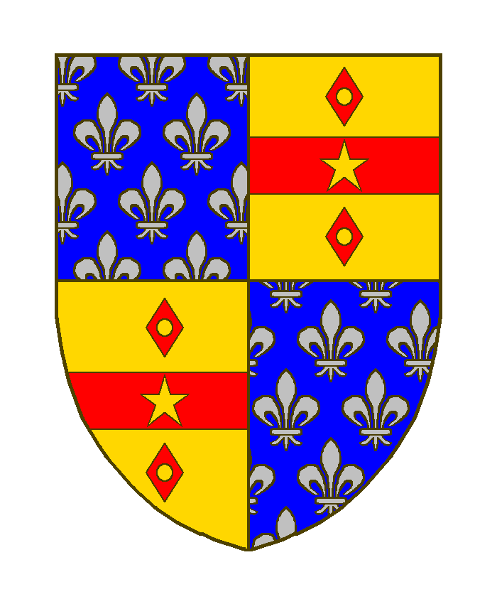 Souvet – variante Sizes: 150 × 150 / 247 × 300 / 700 × 850 de Souvet - variante Armes: Écartelé: aux I et IV d’azur semé de fleurs de lis d’argent, aux II et III d’or à la fasce de gueules chargé d’une étoile d’or et accompagnée de deux macles de gueules. Sources du Dr. Loutsch: (B.). Zitiert nach (Quelle): A.L. Seite 739