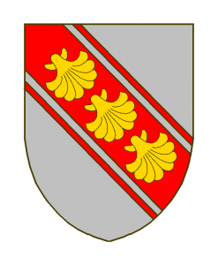 D’argent à la bande coticée de gueules et chargé de trois coquilles d’or.