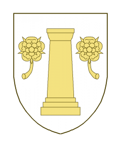 Une colonne accostée de deux roses tigées.