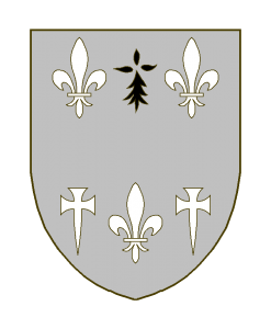Trois fleurs de lis, accompagnées d’une moucheture d’hermine au point du chef, et de deux croisettes pattées au pied fiché, accostant la fleur de lis de la pointe.