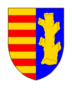 Parti, au I burelé d’or et de gueules, au II d’azur au chicot d’or.