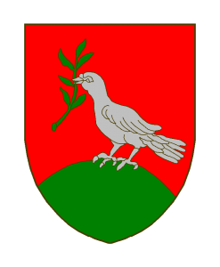 De gueules à la colombe d’argent au naturel, posée sur une montagne de sinople, portant dans le bec un rameau d’olivier.