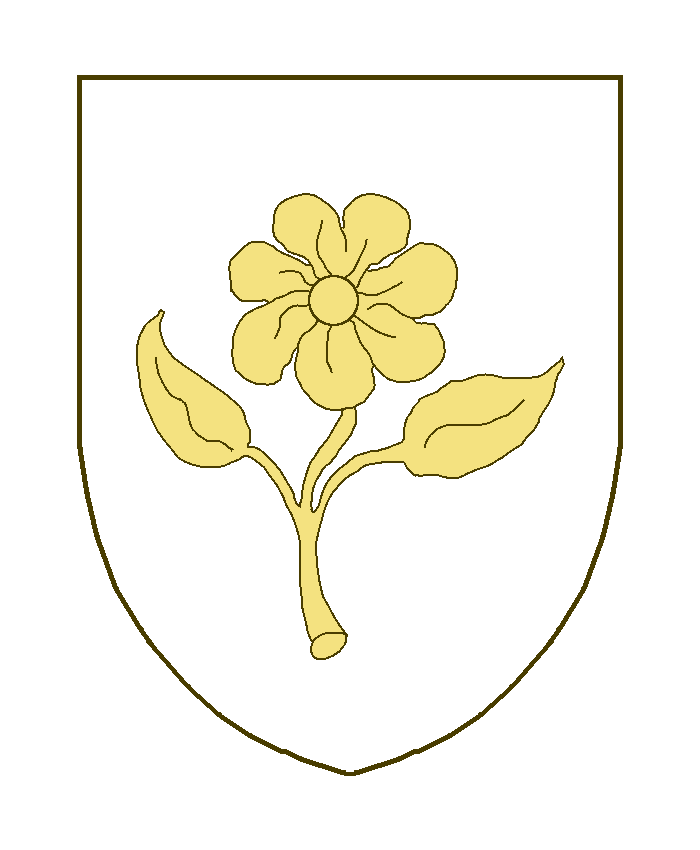 Une fleur à sept pétales, tigée et feuillée, en pal.