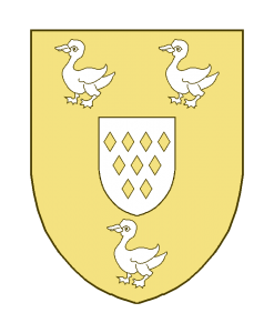 Un écusson en coeur chargé de neuf losanges posées 4 – 3 – 2, accompagné de trois canettes, deux en chef, une en pointe.