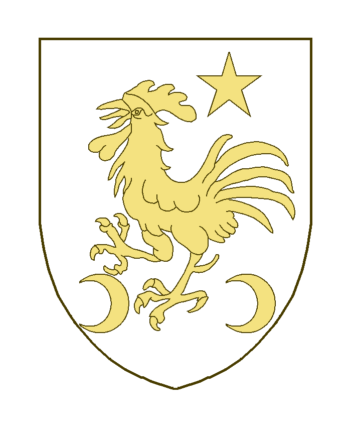 Un coq, accompagné en chef par une étoile, et de deux croissants tournés en pointe.,