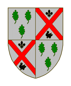 Écartelé: aux I et IV d’argent à trois feuilles de chêne de sinople, les tiges en bas, aux II et III d’argent au sautoir de gueules, accompagné en chef d’une fleur de lis de sable, en pointe d’une merlette du même.