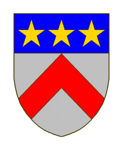 D’argent au chevron de gueules, au chef d’azur chargé de trois étoiles d’or.