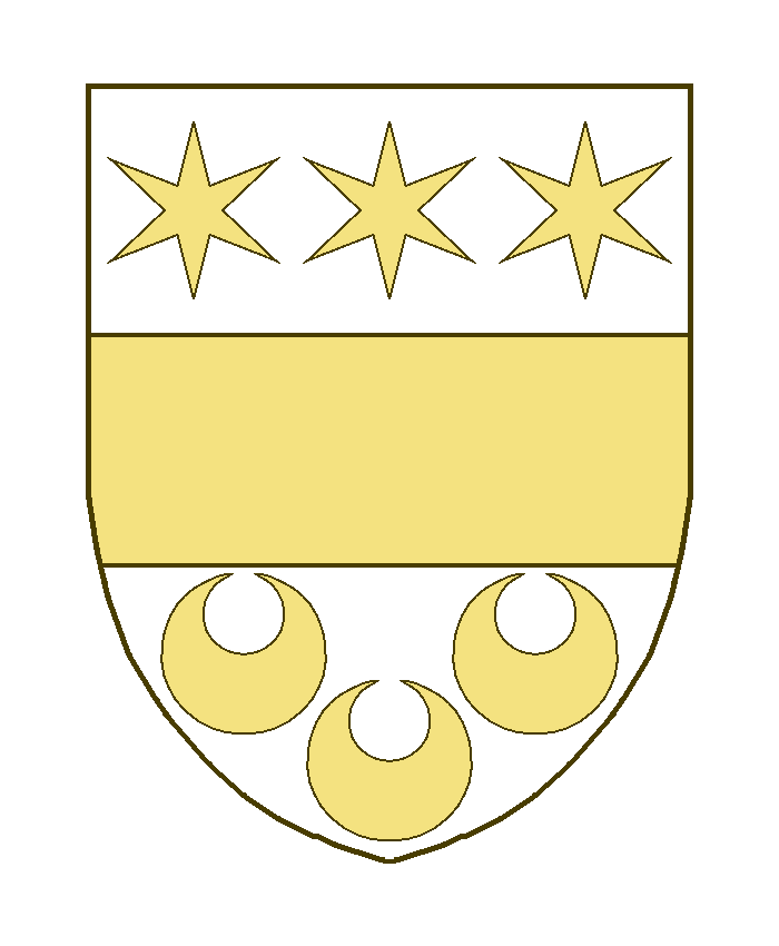 Une fasce accompagnée en chef de trois étoiles à six rais, en pointe de trois croissants posés 2 et 1.