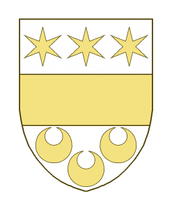 Une fasce accompagnée en chef de trois étoiles à six rais, en pointe de trois croissants posés 2 et 1.