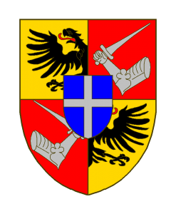 Écartelé: aux I et IV d’or à une demie-aigle de sable, issante de la partition, lampassée de gueules, aux II et III de gueules au dextrochère armé tenant une épée -et sur le tout d’azur à la croix d’argent qui est de Tornaco.