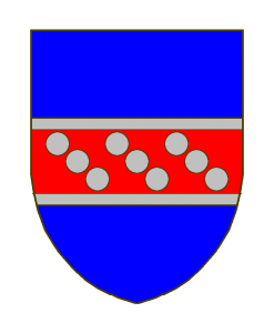 D’azur à la fasce de gueules, bordé d’argent, chargé de neuf besants du même, rangés en trois bandes, 3 – 3 – 3.