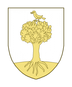 Un arbre terrassé surmonté d’un oiseau posé sur la cime de l’arbre.