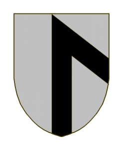 D’argent au pal-chevron (ou pal-bande) de sable.
