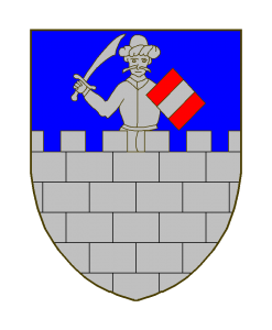 Coupé d’azur, sur un mur crénelé d’argent maçonné de sable, l’azur chargé d’un Turc issant mouvant du mur, tenant de la dextre un cimeterre d’argent, de la sénestre un bouclier rectangulaire de gueules à la fasce d’argent.