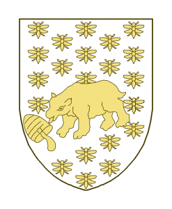 Un ours passant, mangeant du miel qui s’écoule d’une ruche renversée, le champ semé d’abeilles.
