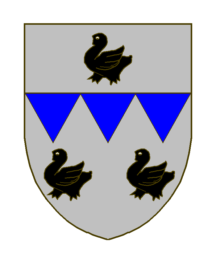 D’argent à la mi-fasce vivrée de trois pointes d’azur, les pointes vers le bas, accompagnée de trois merlettes de sable, une en chef, deux en pointe.