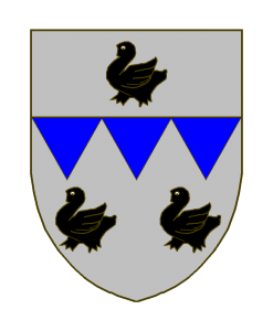 D’argent à la mi-fasce vivrée de trois pointes d’azur, les pointes vers le bas, accompagnée de trois merlettes de sable, une en chef, deux en pointe.
