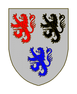 D’argent à trois lions posés 2 et 1, le premier de gueules, le deuxième de sable, le troisième d’azur.