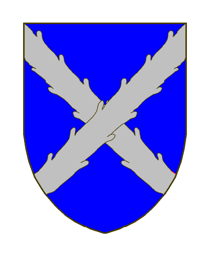 Un sautoir écoté, dit croix de Bourgogne (l’écu hachuré de lignes horizontales azur).