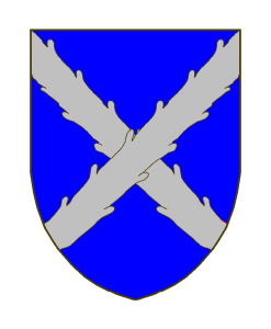 Un sautoir écoté, dit croix de Bourgogne (l’écu hachuré de lignes horizontales azur).