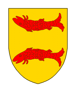 D’or à deux barbeaux de gueules, adossé s, posés en fasce l’un sur l’autre.