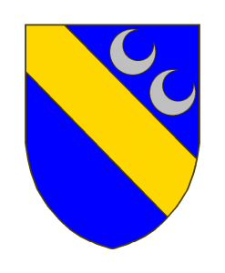 D’azur à la bande d’or, surmontée de deux croissants d’argent.