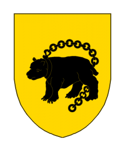 D’or à l’ours passant de sable, enchaîné.