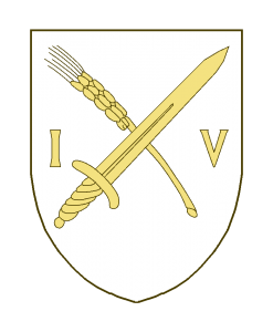 Un epi et une épée, la pointe en haut, passés en sautoir, accostés des lettres I et V.