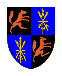 Écartelé, aux I et IV de sable au renard contourné au naturel, rampant, aux II et III d’azur à trois epis d’or liés en gerbe.