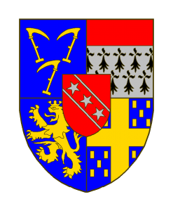 A dextre une licorne d’or, à sénestre un lion d’or (ou deux léopards lionnés au naturel).