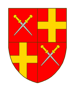Écartelé: aux I et IV de gueules à deux bourdons d’argent, pommetés et emmanchés d’or en sautoir, aux II et III de gueules à la croix engreslée d’argent.