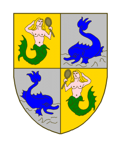 Écartelé: aux I et IV d’or à une sirène de carnation cantonnée d’or, tenant un miroir et un peigne au naturel, celle du I contournée, aux II et III d’argent au dauphin d’azur, la queue en haut, nageant sur une mer d’argent, le dauphin du III contourné.