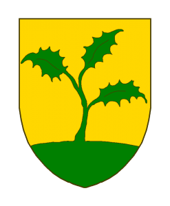 D’or à une tige de houx de trois branches de sinople posée sur une terrasse du même.