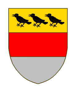Coupé d’or et d’argent, à la fasce de gueules brochant, accompagnée en chef de trois merles de sable.