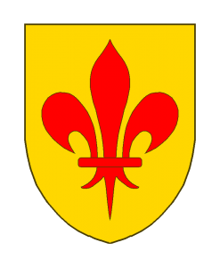 - Ou: Un buste de more habillé de gueules à brandebourgs d’or,tortillé d’argent.