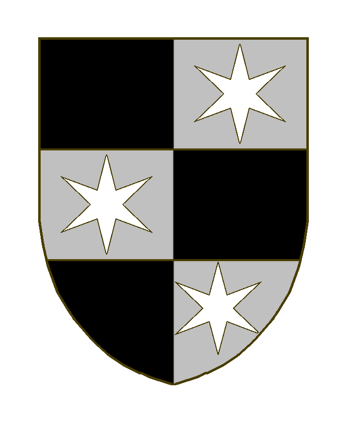 Parti de sable et d’argent, à la fasce de l’un en l’autre, les pièces d’argent chargées chacune d’une étoile à six rais de . . .