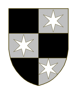 Parti de sable et d’argent, à la fasce de l’un en l’autre, les pièces d’argent chargées chacune d’une étoile à six rais de . . .