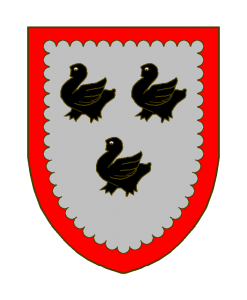 D’argent à trois merlettes de sable, à la bordure engreslée de gueules.