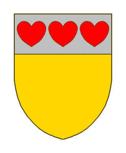 D’or au chef d’argent chargé de trois coeurs de gueules.