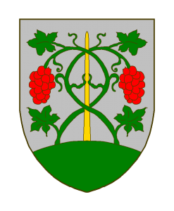 D’argent à deux ceps de sinople terrassés du même, fruités de gueules, lesquels sont acollés et entrelacés en double sautoir sur un échalas d’or posé en pal.