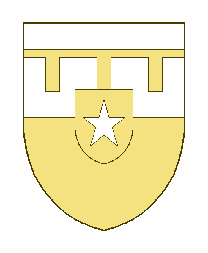 Coupé, en chef un lambel, et un écusson brochant en coeur (aussi sur le pendant central du lambel) chargé d’une étoile.
