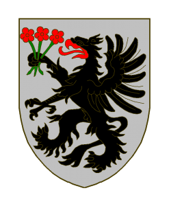D’argent au griffon de sable, becqué de gueules, tenant de la dextre trois roses de gueules tigées et feuillées de sinople.