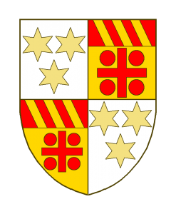 Écartelé: aux I et IV trois étoiles à six rais, aux II et III (d’or) à la croix alésée(de gueules) cantonnée de quatre besants (du même), au chef (de gueules) à trois bandes (d’or).
