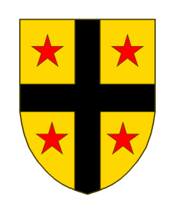 D’or à la croix de sable cantonnée de quatre étoiles de gueules.