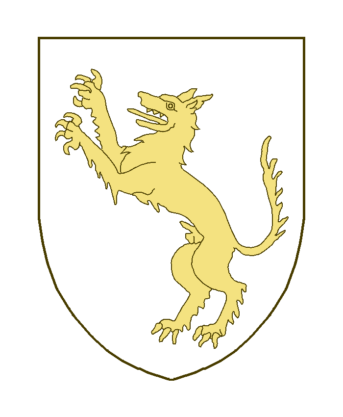 Une tête et col de loup entre deux cornes de boeuf garnies chacune, en haut, d’une embouchure.