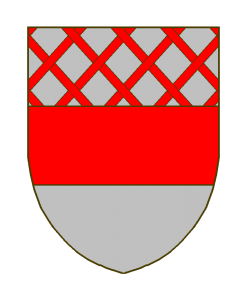 Un bonnet de gueules retroussé d’argent surmonté d’une boule d’or sommée d’un plumail de sable.