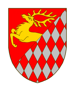 Taillé, au I de gueules au cerf issant d’or, au II Losangé d’argent et de gueules.