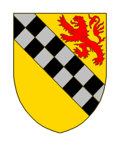 D’or à la bande échiquetée d’argent et de sable, accompagnée en chef d’un lion de gueules.