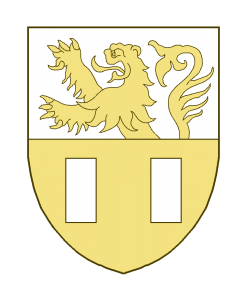 Coupé, en chef un lion issant, en pointe deux billettes rangées.